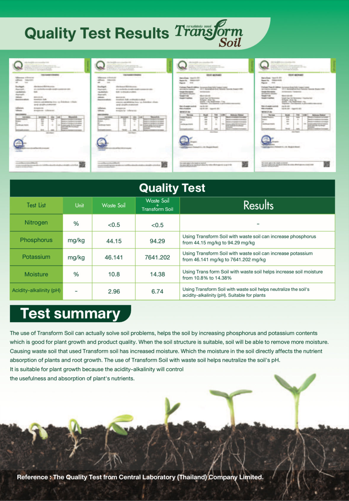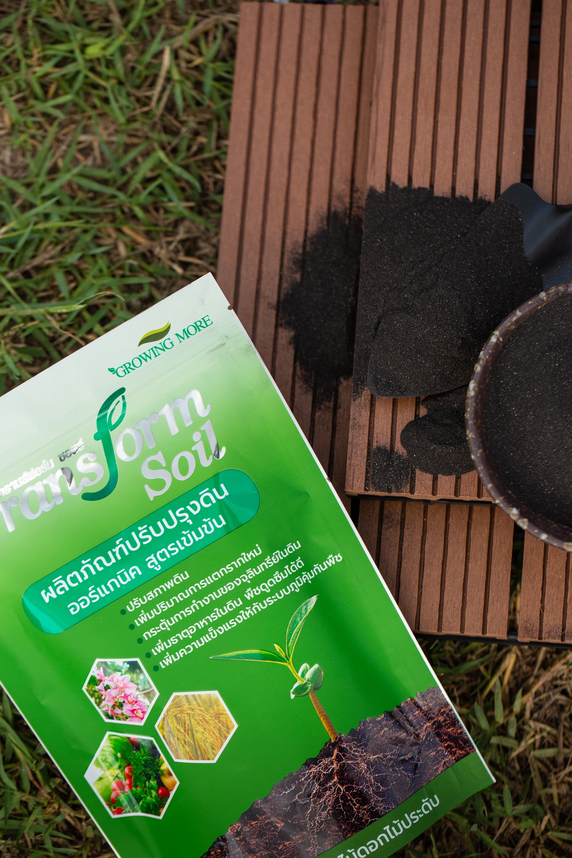 Mix 1 kilogram of Transform Soil with 50–100 kilograms of fertilizer or compost to boost nutrient absorption and soil improvement.